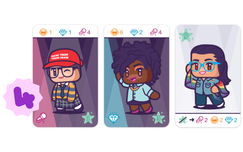Consigue recursos gracias a tu outfit y cartas de acción. Con ellos podrás adquirir cartas de fan que te proporcionarán fama.